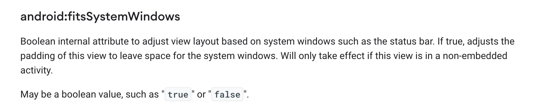 값이 true라면 system window 가 적용될 padding 이 적용 되는데, 나는 아마 해당 padding 영역을 보며 왜 안 없어지지 ? 🤔 라며 고민을 했었다.